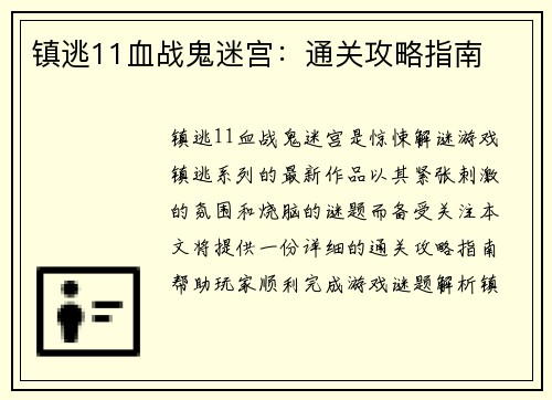 《镇逃11血战鬼迷宫》是惊悚解谜游戏《镇逃》系列的最新作品,以其紧张刺激的氛围和烧脑的谜题而备受关注。本文将提供一份详细的通关攻略指南,帮助玩家顺利完成游戏。